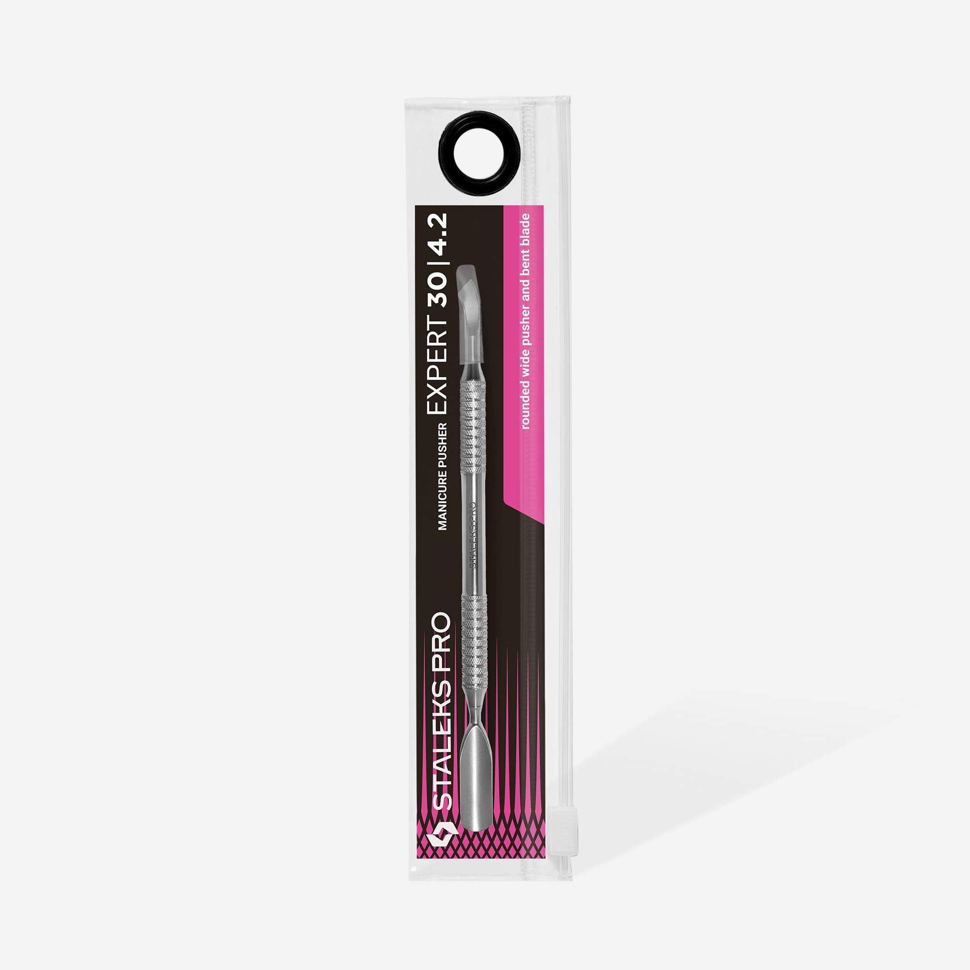 Zaobljen širok potiskač z zaobljenim rezilom: Potiskač vključuje zaobljen končni del z zaobljenim rezilom, kar omogoča natančno in udobno delo pri oblikovanju nohtov. Na drugi strani je večji potiskalnik, ki je namenjen širšim nohtnim ploščam, kar omogoča prilagodljivo uporabo.